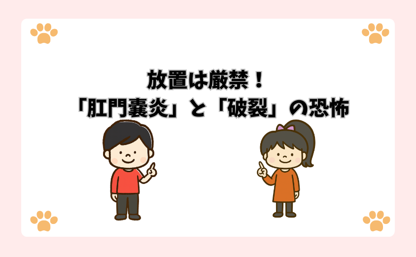 放置すると肛門嚢破裂を招く恐れがあるため、早期発見とケアが重要。