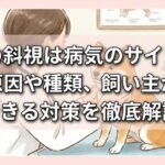 以下の症状が見られたら、家庭でのケアで解決しようとせず、速やかに獣医師の診察を受けてください。