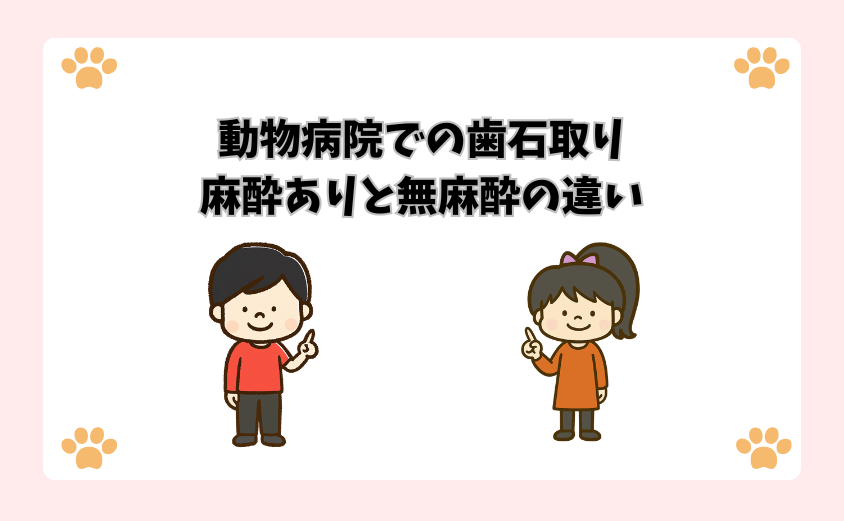動物病院で実施される歯石取りには、大きく分けて「全身麻酔をかける方法」と「無麻酔で行う方法」の2種類が存在します。