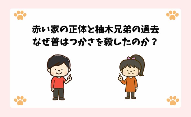 長年謎とされていた、なぜあまねはつかさを殺したのかという問いに対し、ついにその背景が明かされました。鍵となるのは、柚木兄弟の生家である赤い家です。