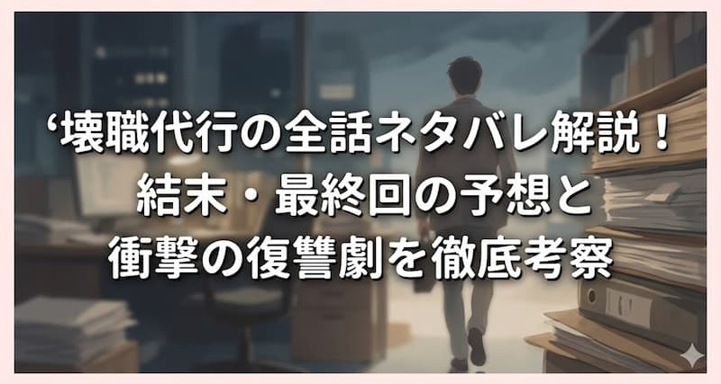 本記事では、『壊職代行』の物語の核心に迫るネタバレ情報を網羅し、登場人物たちの隠された思惑や、誰もが気になる最終回の結末予想までを圧倒的なボリュームで詳しく解説していきます。