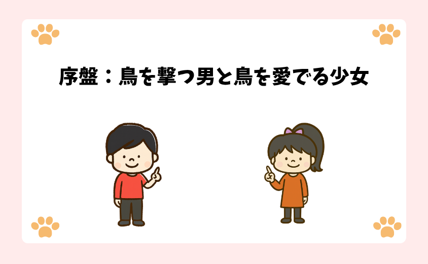 序盤:鳥を撃つ男と鳥を愛でる少女
