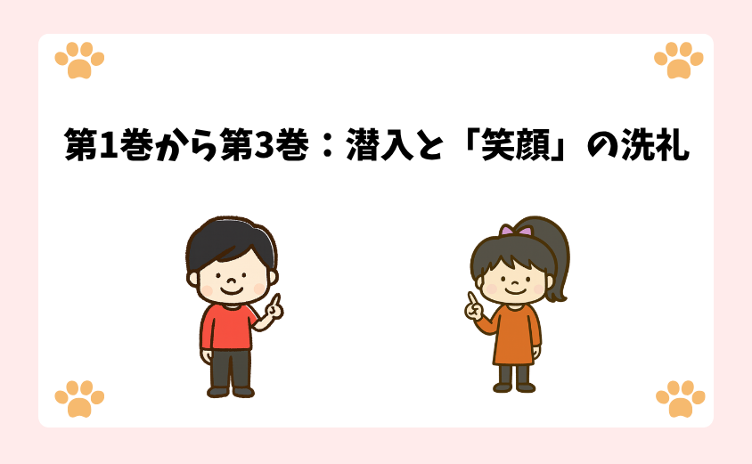 第1巻から第3巻:潜入と「笑顔」の洗礼